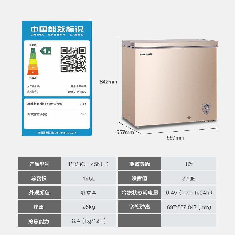 海信【BD/BC-145NUD】145升/单温/一级能效/节能省电/大冷冻力/8档调温冷柜