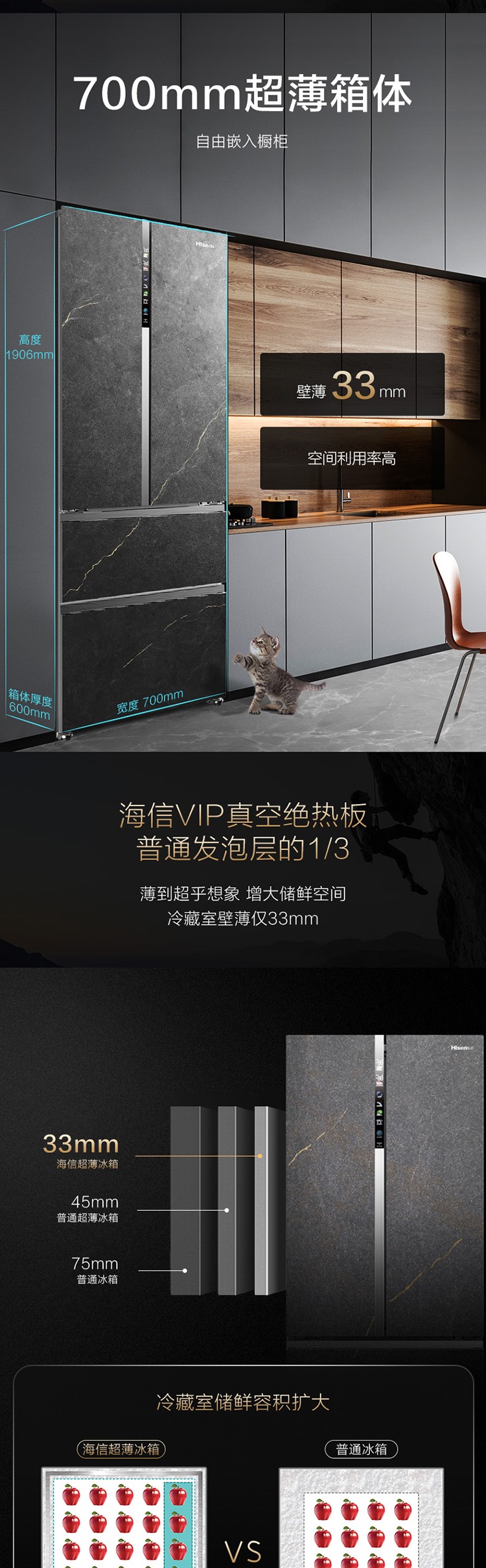 【海信】璀璨505L法式四门/真空头等舱/超薄大容/全空间离子除菌净味/-34℃极冻冰鲜【BCD-505WTDGVBPIV】