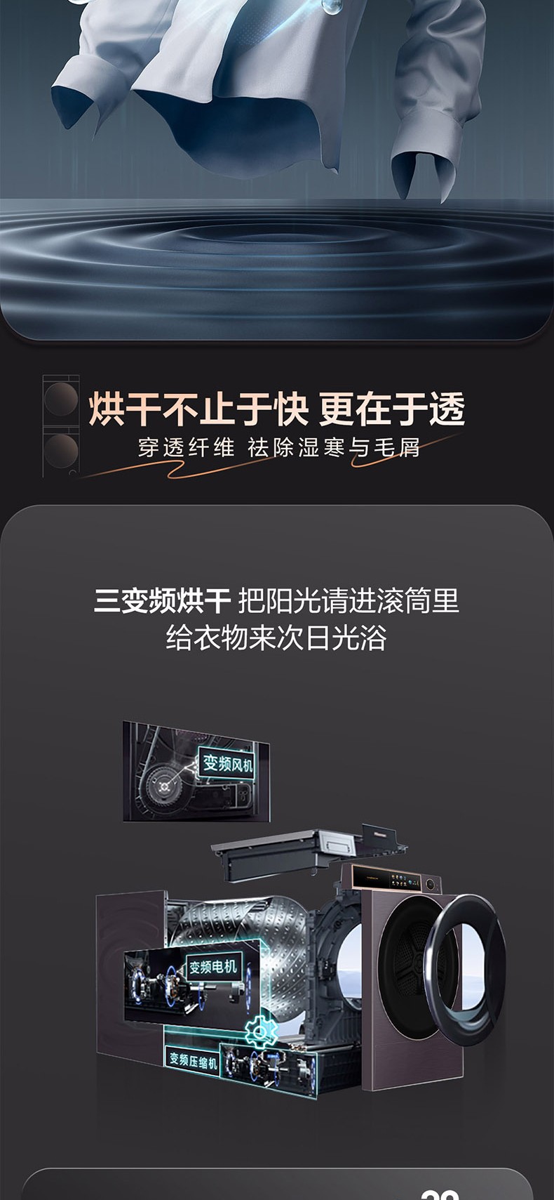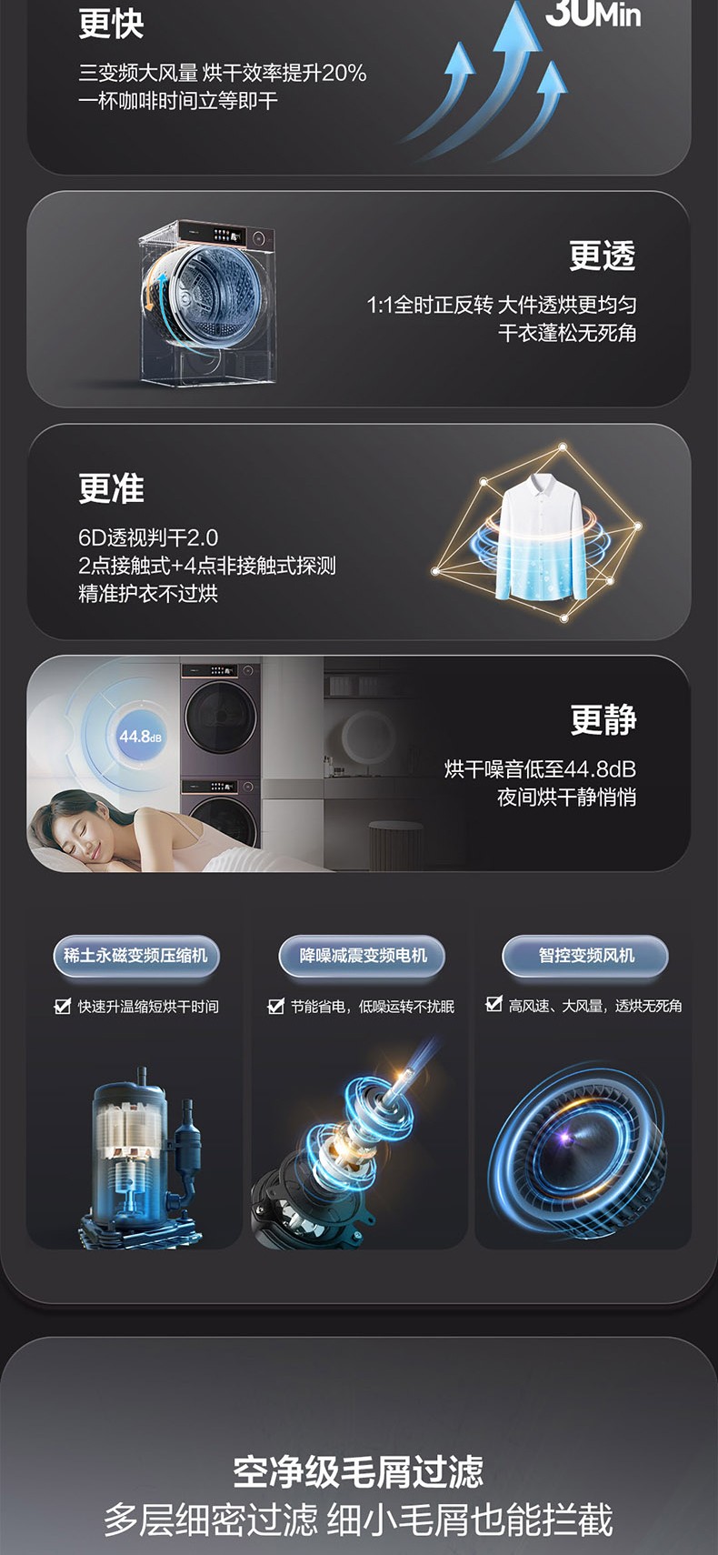 璀璨海升明月洗烘套装U8Q DH100U8Q+WF100U8Q 515mm超薄嵌入/三变频烘干/护肤级护衣/活水洗循环滤除毛屑