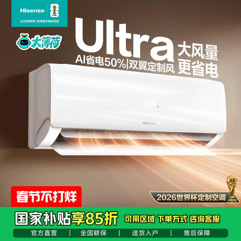 KFR-35GW/A330UPro-X1海信(Hisense)大薄荷空调智省电Ultra大1.5匹挂机 世界杯定制空调AI省电双翼定制风新一级能效国家补贴以旧换新 大1.5匹 空调热卖