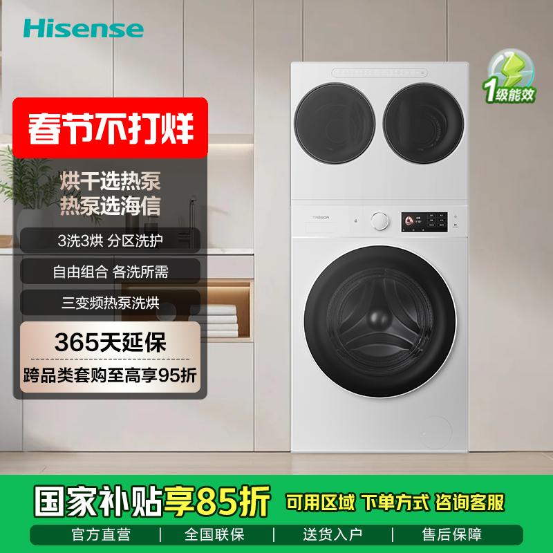 WH130E8Q-1+WV20W 海信璀璨棉花糖三筒E8Q-1全家筒洗衣机 4合1热泵洗烘活水健康洗自由组合分区洗护懒人0手洗