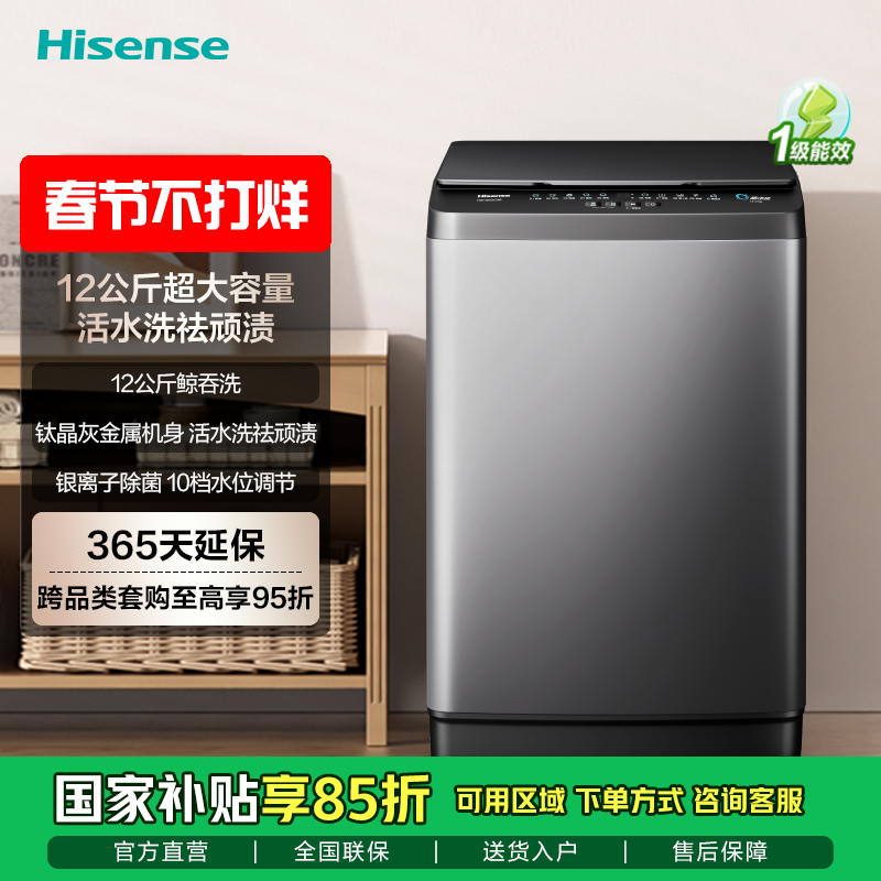 海信(Hisense)WD120A1Q-7 滚筒洗衣机全自动 12公斤超大容量洗烘一体超薄高洗净比活水洗除菌洗 灰色